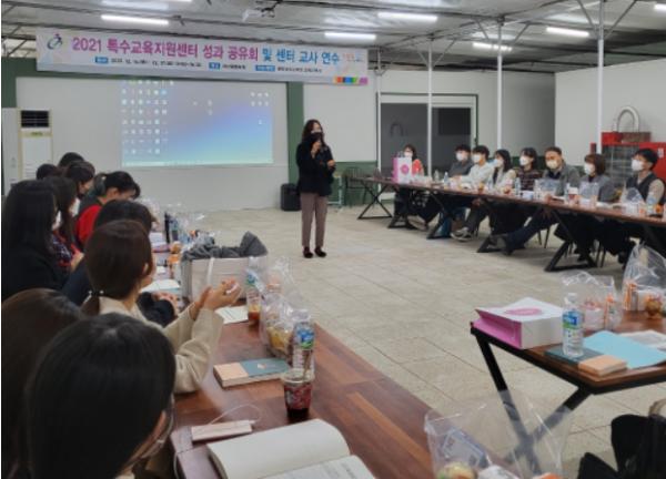 이번 성과 공유회에서는 2021년 지역 특수교육지원센터 주요사업 추진상황을 중심으로 성과 공유 및 지역별 현안문제를 주제로 14개 지역 특수교육지원센터 순회교사 60여명이 참석하여 현장과 소통하는 자리로 이루어졌다.