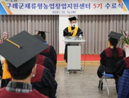 전남 구례군은 16일 체류형농업창업지원센터에서 도시민의 안정 정착을 유도하기 위해 10개월간 운영한 구례군농업창업지원센터 5기 수료식을 가졌다.