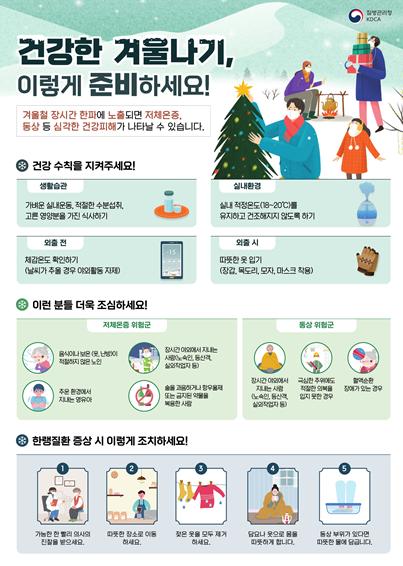 질병관리청은 주말(12.17.~12.18.)동안 기온이 큰 폭으로 떨어질 수 있다는 기상청의 예보에 따라 한랭질환에 각별한 주의를 당부했다.