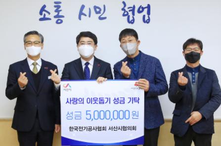 한국전기공사협회 서산시협의회(회장 김기덕)가 17일 서산시에 이웃돕기성금 500만 원을 기탁했다.