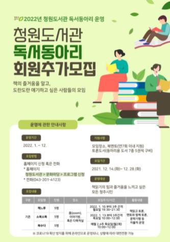 청주청원도서관이 12월 28일까지 2주간 독서동아리 신규 회원을 모집하고 있다.