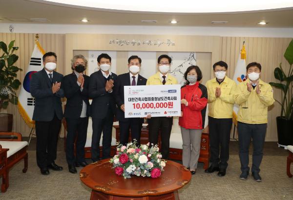 충남도는 대한건축사협회 충남건축사회로부터 성금 1000만 원을 전달받았다고 17일 밝혔다.