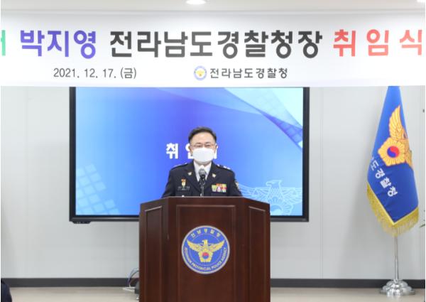 전남경찰청은 2021. 12. 17 오전 전남경찰청 7층 남도마루에서 ‘제33대 박지영 전라남도경찰청장 취임식’을 가졌다.