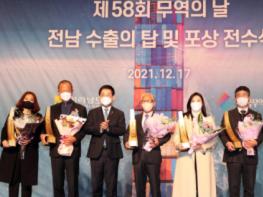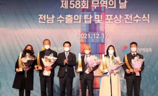 전라남도는 17일 영암 호텔현대 바이 라한 목포에서 한국무역협회 광주전남지역본부 주관으로 ‘제58회 무역의 날’ 수출탑 및 유공 포상자 전수식을 개최했다.