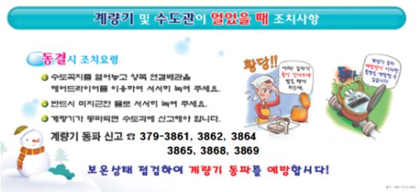 군은 지난 10월부터 수도계량기 동파 예방 홍보와 동파 사고 시 긴급복구팀 운영을 주요 내용으로 하는 ‘2021년 겨울철 수도시설 동파 방지대책’을 수립, 운영 중이다.