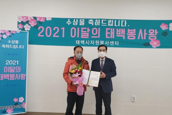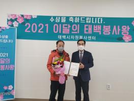 태백시자원봉사센터는 16일 태백시자원봉사센 회의실에서 10월 박의도, 11월 안경숙님을 이달의 태백봉사왕으로 선정하고 시상을 진행했다.