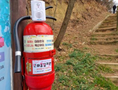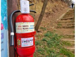 또한 소화기 특징 중 하나인 빨간 색상이 등산로 입구에서는 시인성이 높아 쉽게 눈에 띄고 음성 알림 송출기로 안내방송을 틀어 등산객들에게 경각심을 불러일으키는 메시지를 안내할 수 있다고 소방서 관계자는 전했다.