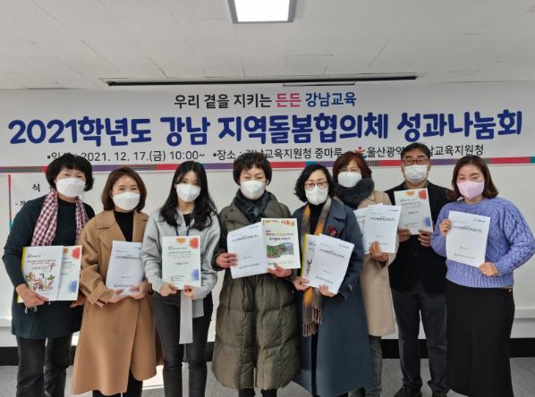 울산강남교육지원청은 지난 17일 교육청, 지자체 담당자, 지역아동센터 대표 등 10명이 참석한 ‘2021. 강남 지역돌봄협의체 성과나눔회’를 개최했다.