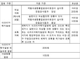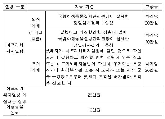 한편, 환경부는 시군별 야생멧돼지 포획포상금 지방비 지급금액 차이로 인해 포획포상금을 더 받으려는 일부 엽사의 부정행위가 야생멧돼지 임의이동을 유발할 요인으로 작용한다고 보고 관계부처 및 시도와 협의하여 시군별로 다르게 지급되는 포획포상금을 동일하게 지급하는 방안도 추진한다.?