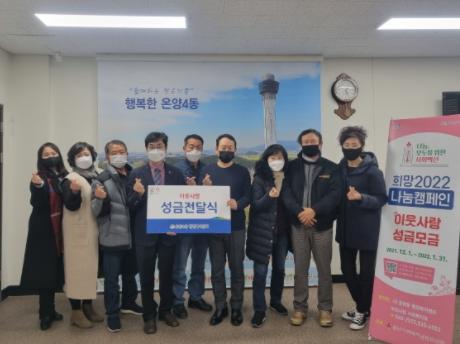 아산시 온양4동이 지난 17일 ‘희망2022 나눔캠페인’ 이웃돕기 성금 집중모금 행사를 개최했다.