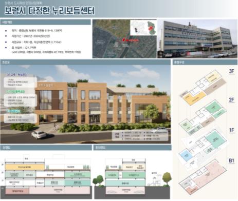 이번에 선정된 ‘보령시 다정한 누리보듬센터’는 동대동에 위치한 종합사회복지관을 철거하고 주민이 필요로 하는 공간기능 및 서비스를 보완한 생활 SOC 복합시설을 건립하는 사업이다.