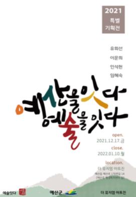 예산군 예술단체인 ‘예술잇다’가 기획전시인 ‘예산을 잇다, 예술을 잇다’를 12월 17일부터 내년 1월 10일까지 예산읍 더뮤지엄 아트진에서 개최한다.