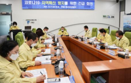 군은 17일 재난안전대책본부에 편성된 11개 협업부서장 및 8개 읍·면장이 참석한 가운데 이광동 부군수 주재로 ‘코로나19 확산방지를 위한 긴급 회의’를 개최하여 지역 확산 상황을 점검하고 이에 대한 대책마련을 논의하였다.