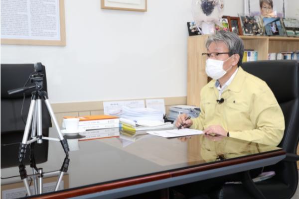 유진섭 시장이 20일 영상 간부회의를 주재하고 각 부서에서 추진하는 내년도 주요 현안 사업에 대해 꼼꼼히 점검했다.
