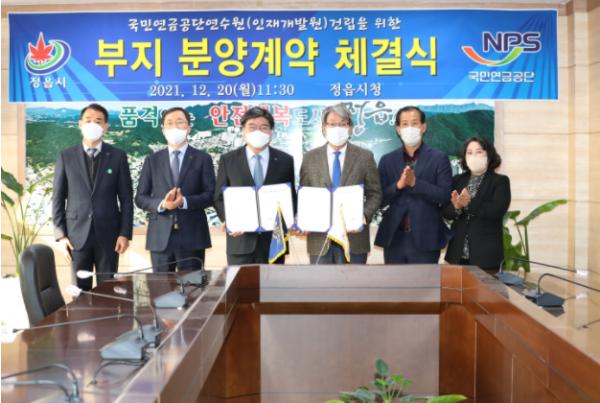 정읍시와 국민연금공단은 20일 정읍시청 재난안전상황실에서 국민연금공단 연수원(인재개발원) 건립을 위한 분양계약을 체결했다.