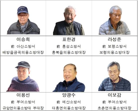 표한경(87세)?양광수(82세)?이보감(82세)?라성준(84세) 전 대장도 모두 1960년대에 의용소방대에 투신해 1990년 초까지 각자의 고향에서 내 고장 내 이웃을 스스로 지킨다는 의용봉공 정신을 몸소 실천한 충남소방의 산증인들이다.