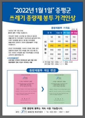 증평군이 내년 1월 1일부터 쓰레기 종량제 봉투 가격을 인상한다.