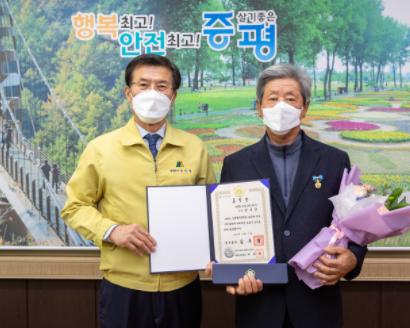 증평군 마을만들기협의회 연기찬 회장이 2021년 농촌지역개발사업 유공 국무총리 표창을 받았다.