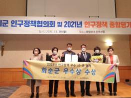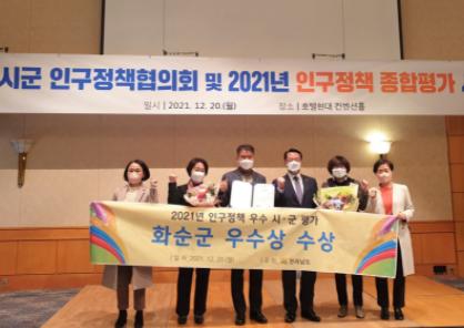 화순군이 전라남도가 주최한 ‘2021년 인구정책 우수 시군 시상식’에서 우수상을 받았다.