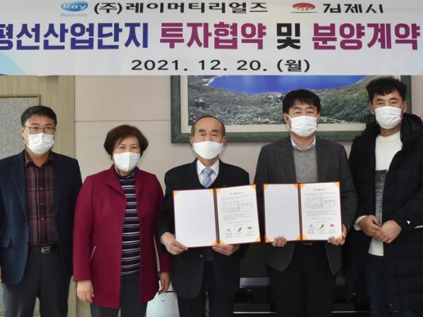 김제시는 지난 20일, ㈜레이머티리얼즈와 공장 추가 건립을 위한 투자협약 및 분양계약을 체결했다.