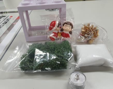 테라리움은 투명유리에 식물을 심는 작업으로, 크리스마스와 연관한 다양한 모형들과 함께 구성되어 어르신의 시각적 만족도를 제고한다.