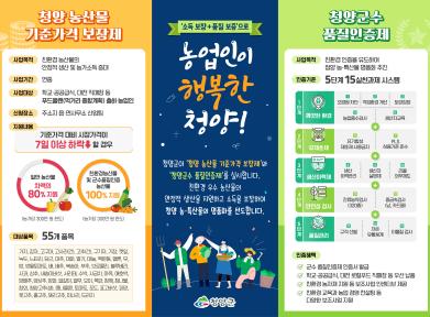 청양군이 내년 1월부터 농산물 기준가격 보장대상 품목을 55종으로 확대하고, 올해 3차 보상금으로 농가 133곳에 1,900만 원을 지급한다.