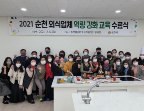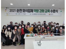 순천시는 지난 17일 농산물종합가공지원센터에서 2021 순천 외식업체 역량 강화 교육 수료식을 개최했다.