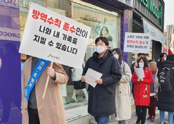 연말연시 이동과 모임의 증가로 많은 확진자 발생이 우려되는 가운데 시민들이 방역 실천에 적극적으로 동참할 수 있도록 방역패스 의무적용시설과 예방접종 증명 방법, 강화된 방역 대책 등이 안내된 홍보물을 배부했다.