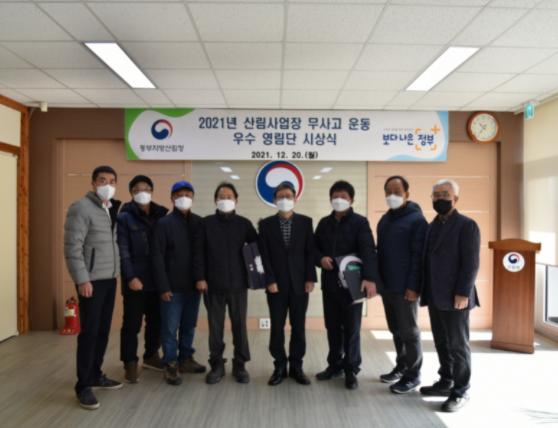 동부지방산림청은 12월 20일 동부지방산림청 대회의실에서 “2021년 산림사업 무사고 운동 우수영림단 시상식”을 개최했다.