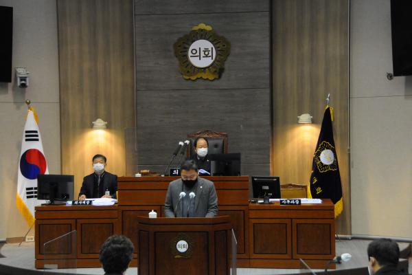 신용균 의장은 폐회사를 통해“지역발전을 위해 노력한 공직자에 고마움을 표하고 군민의 뜻에 부응하는 적극적인 행정 추진”을 당부하였으며,“의회에 관심과 성원을 보내준 군민 여러분들께 감사”의 뜻을 전했다.