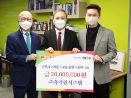 ㈜휴메인시스템은 21일 전주시장실을 찾아 전주시 ‘엄마의 밥상’ 사업에 활용해 달라며 성금 2000만 원을 전주시복지재단 ‘전주사람’에 기탁했다.