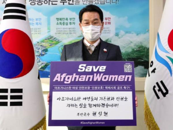 권익현 부안군수가 아프가니스탄 여성의 인권보호와 안전보장을 촉구하는 ‘세이브 아프간 위민(save afghan women)’ 챌린지에 동참했다.