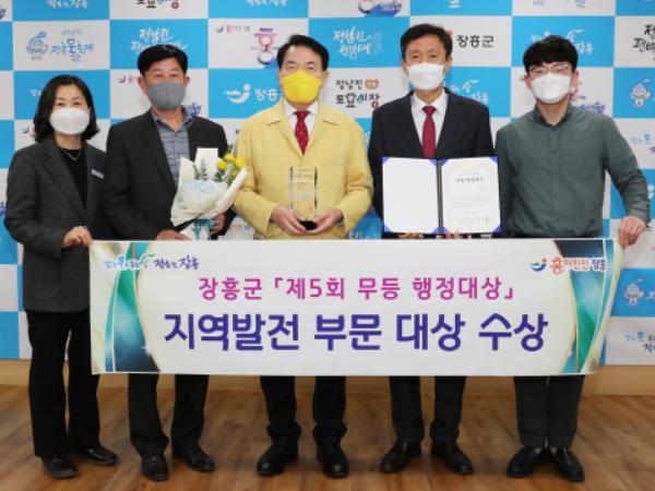 장흥군이 지난 16일에 열린 ‘제5회 무등 행정대상’ 시상식에서 지역발전 분야 대상을 수상했다.