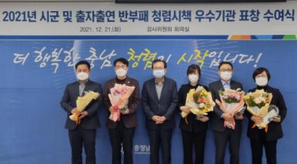 부여군은 지난 21일 충청남도가 주관한 2021년 시·군 반부패·청렴시책 평가에서 ‘우수기관’으로 선정돼 기관표창을 받았다.