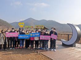 유치면 직원들은 “어서 와~! NEW 신풍습지공원은 처음이지?”, “초대합니다! 새롭게 단장한 유치면 신풍습지공원으로~”라는 카드를 각각 들고 달 조형물 앞에서 포즈를 취했다.