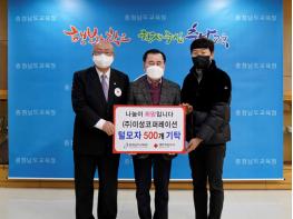 충청남도교육청은 21일 도교육청 접견실에서 ㈜미성코퍼레이션(천안 소재)으로부터 털모자 500개(어린이용 400개, 어른용 100개)를 기탁받았다.