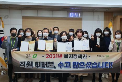 청주시 복지정책과는‘지역복지사업평가 우수상’과 ‘복지멤버십 구축’등 2개 부분에서 보건복지부 장관 표창을 수여 받아 적극적인 복지정책을 펼친 성과를 인정받았다.