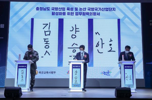 이날 1부에서 도는 육군 교육사령부, 논산시와 ‘충남도 국방산업 육성을 위한 업무협력의향서(LOI)’를 체결했다.