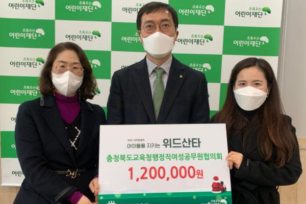 충북교육청 행정직 여성공무원협의회는 22일 초록우산 어린이재단 충북지역본부를 방문해 산타원정대 후원금 120만원을 전달했다.