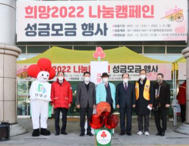 충북 단양군은 이웃이 이웃을 돕는 ‘희망2022 나눔 캠페인’의 군민 참여율 및 관심도 제고를 위해 사랑의 온도탑 제막식 및 현장 성금 모금을 단양 문화예술회관 로비에서 개최했다고 지난 22일 밝혔다.
