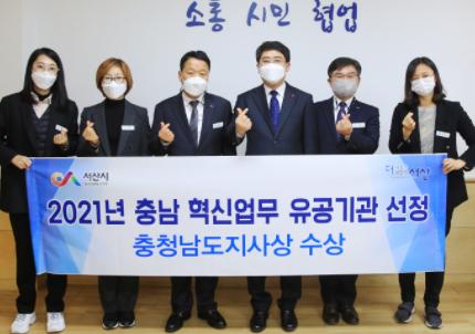 충남 서산시가 2021년 충남 혁신업무 유공 기관에 선정돼 도지사 표창을 받았다.