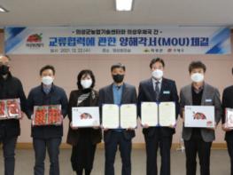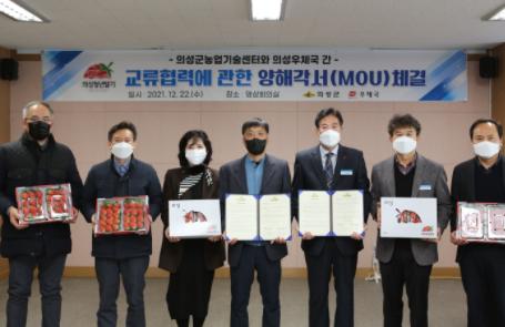 의성군은 22일 농업기술센터 영상회의실에서 농업기술센터소장과 의성우체국장 등이 참석한 가운데 의성군에서 역점적으로 추진하는 청년농업인 스마트팜 창업지원 사업의 판로확대 방안 모색을 위한 양해각서(MOU)를 체결했다.