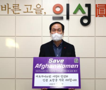 김주수 의성군수는 22일 아프가니스탄 여성 인권보호와 안전보장을 촉구하는‘세이브 아프간 위민(Save Afghan Women)’챌린지에 동참했다.