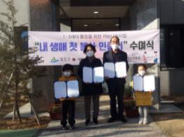 이날 봉사 인증서 수여식에는 코로나19로 재능나눔사업에 참가한 어르신들과 아이들이 모두 참석하지 못했지만 재능기부를 인정받아 90명의 참가자들이 봉사 인증서를 받았다.