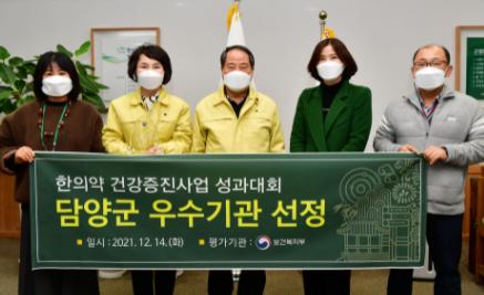 담양군은 한의약 건강돌봄사업 및 건강증진사업 성과대회에서 우수기관으로 선정돼 보건복지부 장관 표창을 수상했다.