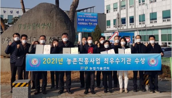 청주시농업기술센터가 지난 23일 농촌진흥청에서 추진하는 ‘농촌진흥사업 성과공유대회’에서 농촌진흥사업 전국 최우수기관을 수상함으로써 3년 연속 우수 기관으로 선정 등 2021년 한 해 동안 총 8건의 수상을 받는 영예를 안았다.
