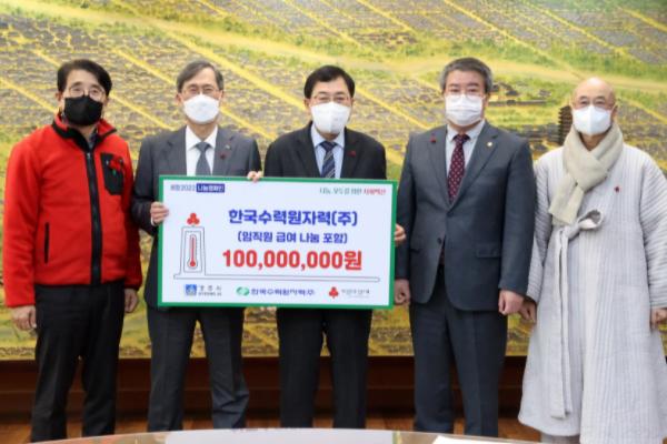 한국수력원자력㈜에서 지난 20일 경주시청을 방문해, 희망2022 나눔캠페인 성금 1억 원을 전달했다.