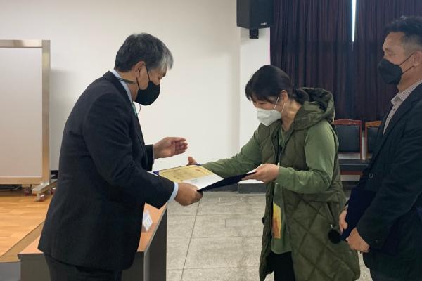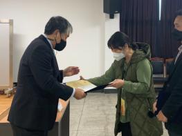 이날 수여식은 코로나19 확산 방지를 위해 2~30분 간격으로 3개 조로 나눠 최소한의 인원만 참석한 가운데 진행했다.