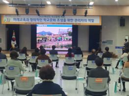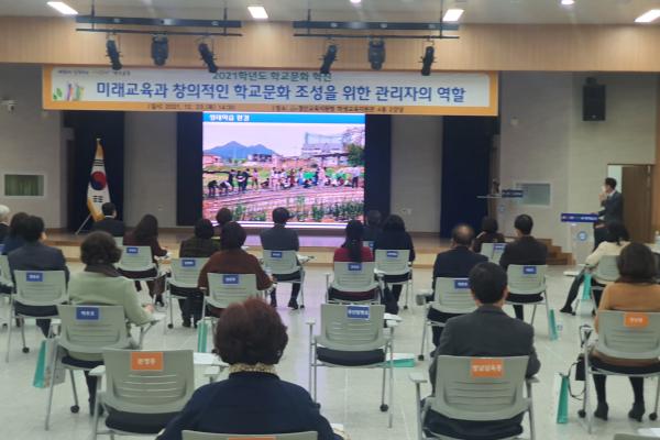 경산교육지원청은 코로나19로 어려운 상황이지만 12월 23일에 경산교육지원청 2강당에서 경북미래학교 모델을 만들어가는 구미봉곡초등학교 박재휘 교장의 강연으로 학교장의 역할에 대한 사례 중심으로 연수를 실시하였다.