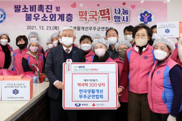 한국생활개선무주군연합회는 23일 농민의 집 3층 조리실습실에서 쌀소비촉진 및 소외계층 떡국떡 나눔행사를 갖는 의미있는 시간을 보냈다.